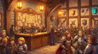 Entre murais de missões, histórias de feitos lendários e o constante vai-e-vem de aventureiros de todos os ranks, a Guilda é lar, refúgio e campo de preparação para aqueles que ousam desafiar o desconhecido.