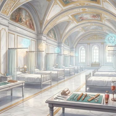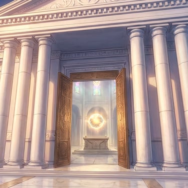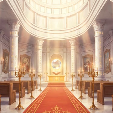O Templo da Luz Divina é um dos poucos lugares da Capital Real onde o silêncio fala mais alto que o poder. Suas colunas brancas e o brilho suave da luz sagrada oferecem refúgio, cura e contemplação àqueles que buscam esperança.