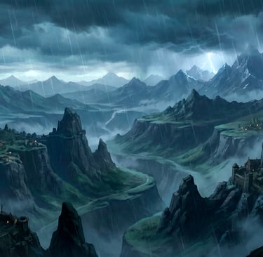 A Província do Trovão é uma terra implacável, moldada por montanhas afiadas, céus carregados e tempestades incessantes. Aqui, sobreviver é um ato de força diária. O trovão não assusta — ele ensina.