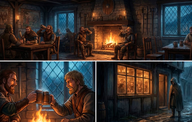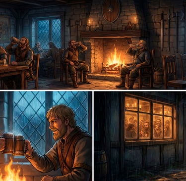 Tavernas iluminadas por fogo e histórias. É aqui que as façanhas do Vale ganham vida, especialmente as lendas sobre um guerreiro capaz de empunhar dois machados gigantes como se fossem extensões do próprio corpo.
